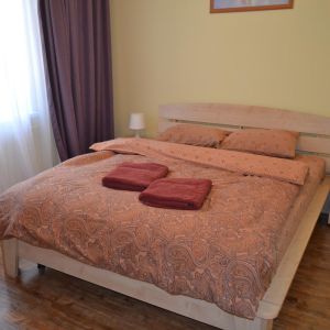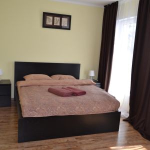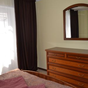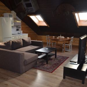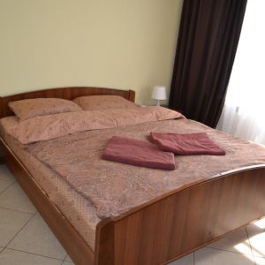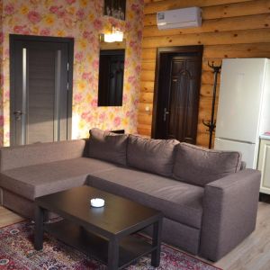 На втором этаже расположен большой номер "апартаменты" вместимостью 2 человека. У номера свой отдельный вход. В номере: большая двухспальная кровать, диван, телевизор со спутниковым ТВ, столовая зона: стол, стулья, кухонный гарнитур, варочная панель, посуда, холодильник.