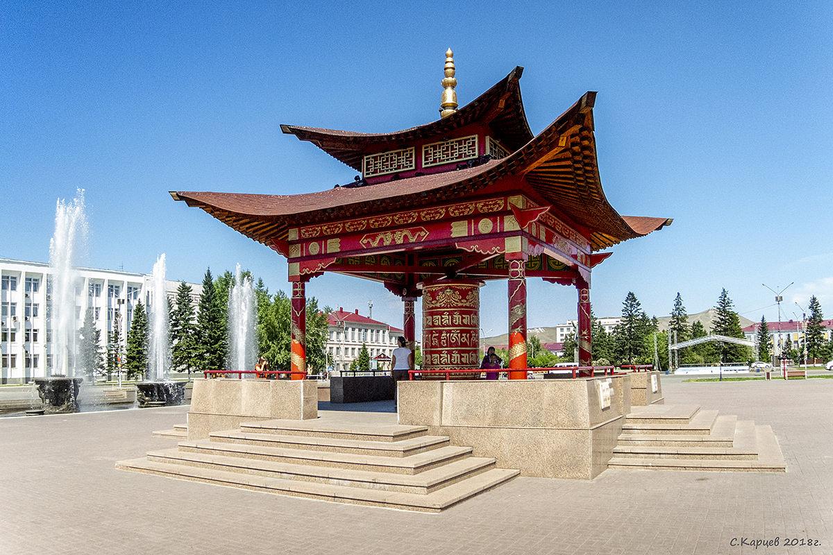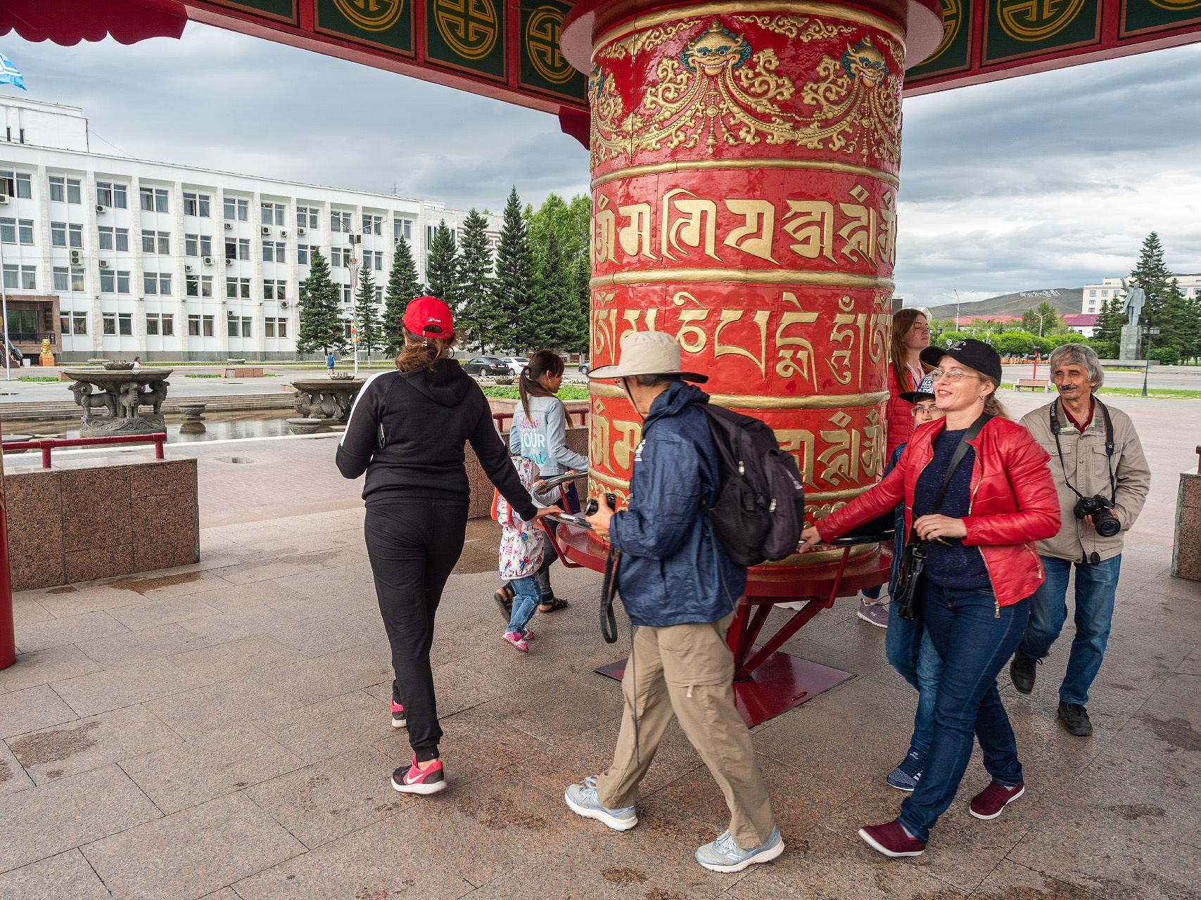 - Обзорная экскурсия по городу с посещением таких объектов, как сквер «Центр Азии» на красивой набережной Енисея. Набережная оформленная в национальном стиле с композициями созданными известным скульптором, Даши Намдаков. Площадь Арата, где находится символ города - Буддийский молитвенный барабан, сегодня этот молитвенный барабан является крупнейшим в России.