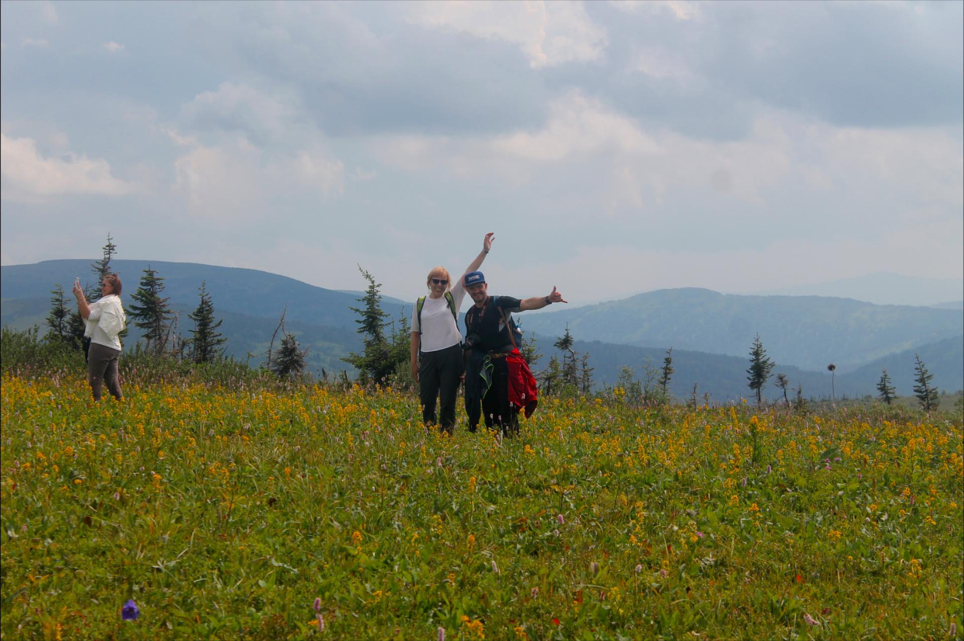 - Ранний выход на пешеходный маршрут на Панфиловские озера. Первозданное озеро находится среди горных ледников, на таежных склонах вокруг густая зелень фиалок и жарков. Поляны краснокнижного разнотравья! Воздух упоительно свеж, благоуханье от альпийских лугов. Самый популярный маршрут для любителей активного отдыха.
