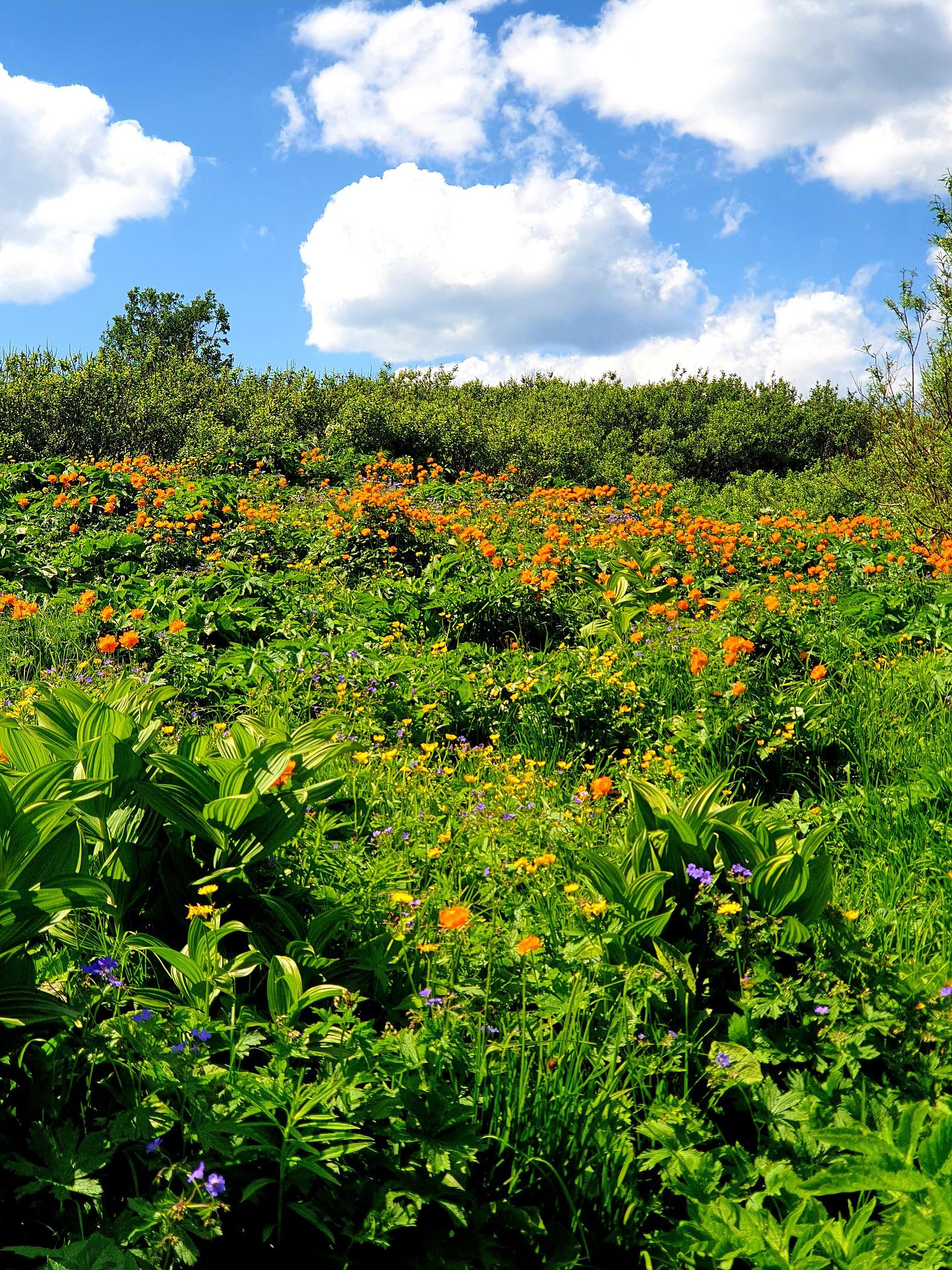 Потрясающие виды открываются на заснеженную гору, у подножья которой ковром цветут самые разнообразные цветы: первыми распускаются подснежники, на смену им приходят жарки и фиалки. Склоны пестрят невообразимыми красками настоящих альпийских лугов.