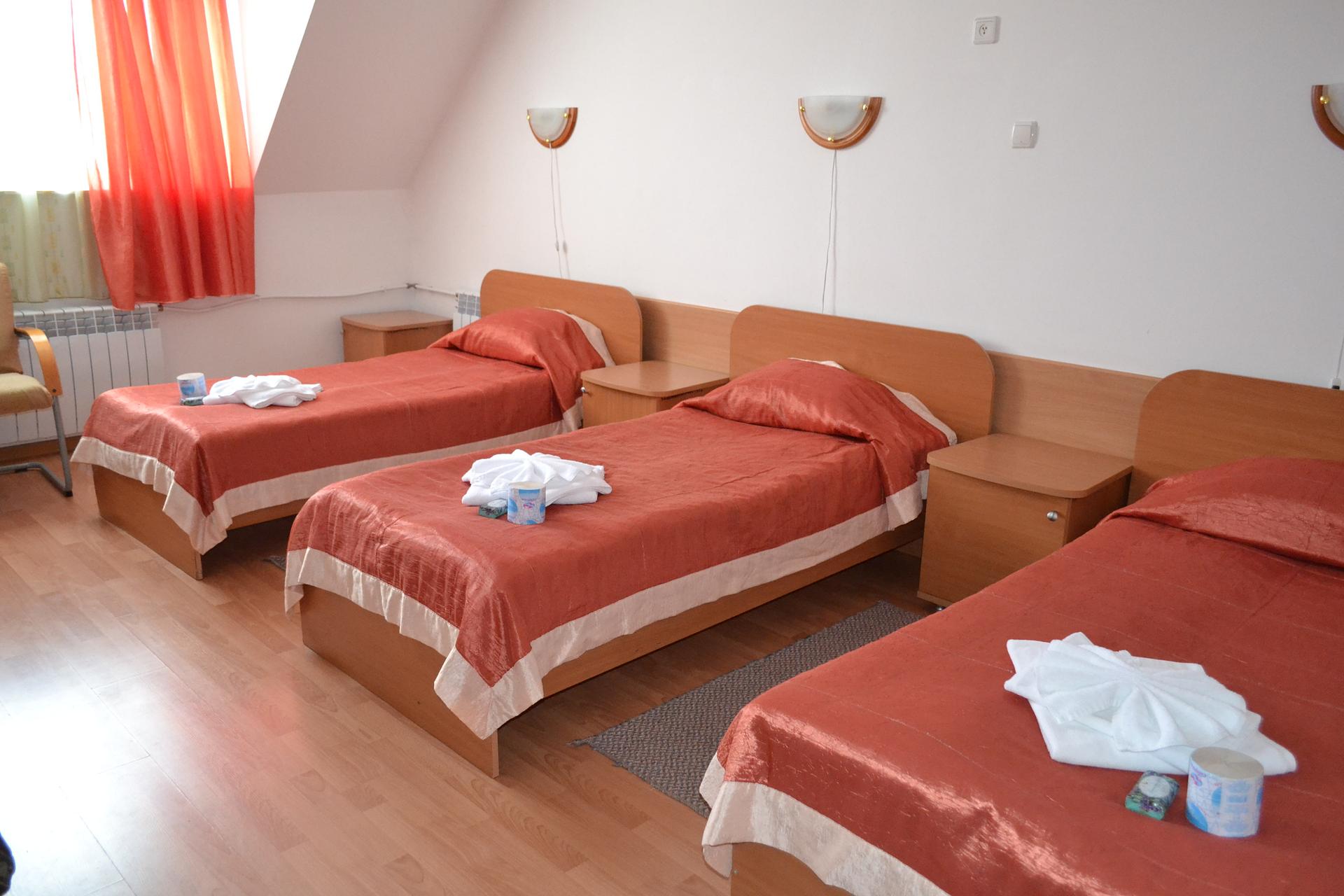 - В корпусах имеются 2-х, 3-х, 4-х местные номера, сгруппированные в блоки с общей прихожей, туалетом, душевой или сгруппированные в секции, соответствующие санитарным нормам.