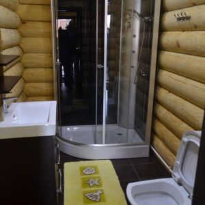 На первом этаже расположены два двухместных номера (левое и правое крыло). В каждом номере: большая двухспальная кровать, стол, стул, холодильник, вешалка для одежды, телевизор со спутниковым ТВ. Санузел с душевой кабиной. Полы с подогревом. У каждого номера свой отдельных вход.