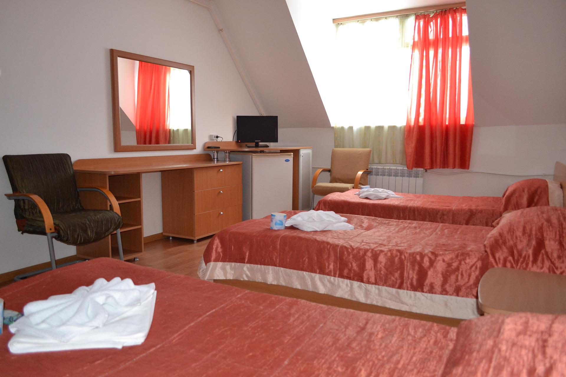 - В корпусах имеются 2-х, 3-х, 4-х местные номера, сгруппированные в блоки с общей прихожей, туалетом, душевой или сгруппированные в секции, соответствующие санитарным нормам.
