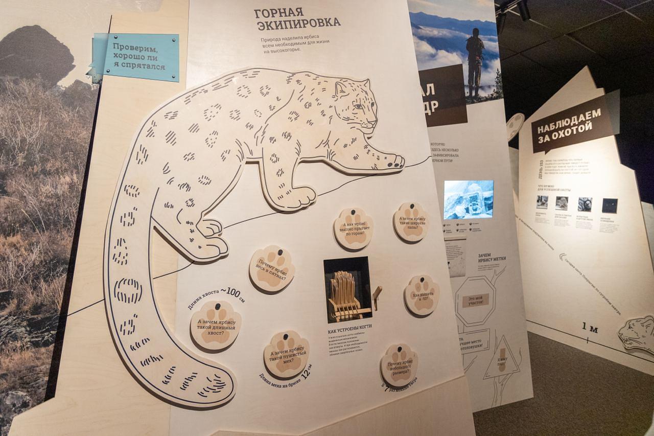 Экскурсия-экспедиция «По следу снежного барса», где участникам предстоит познакомиться с общей информацией о Саяно-Шушенском заповеднике и найти одну из самых загадочных диких кошек нашей планеты. Музейная экспозиция представляет собой лабиринт из «скал и пещер», интерактивных стендов с текстовой информацией и мультимедиа, посвящённых ирбису и среде его обитания.
