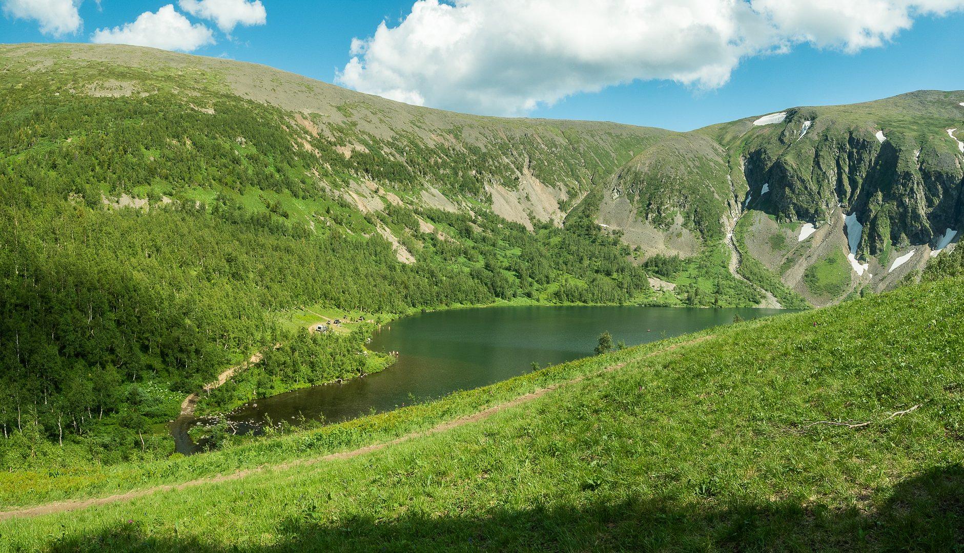 Изюминка этого тура - посещение горных озер - Ивановских. Озера со всех сторон окруженны холмами с пышной растительностью, снежниками, вечными ледниками, а так же впечатляющими водопадами и необычайным «пьяным» лесом.